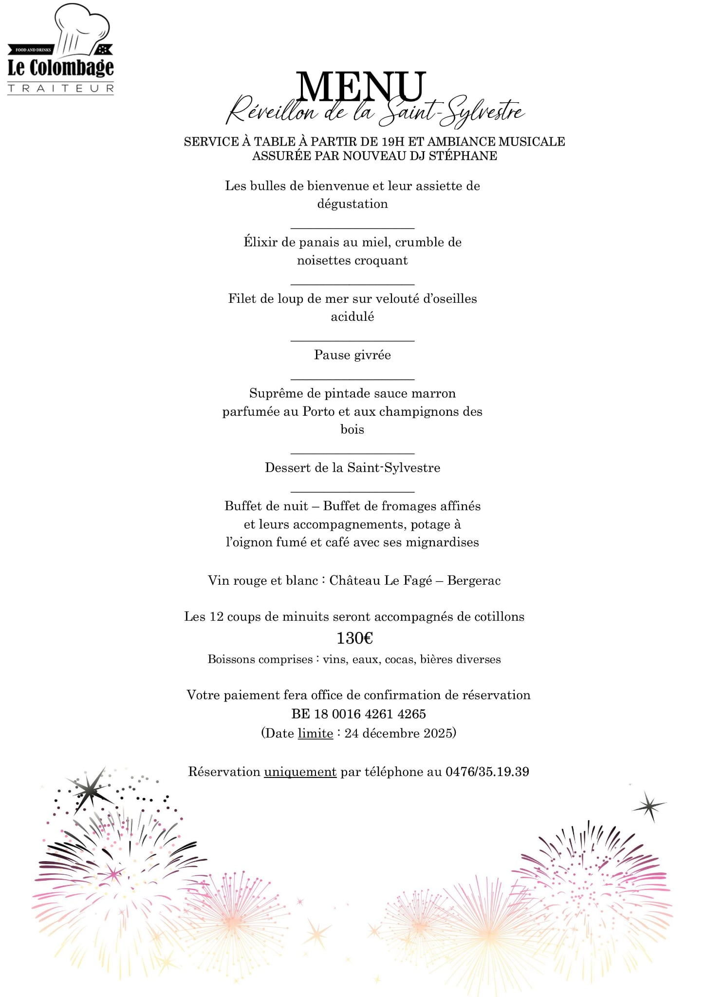 Menu à emporter pour Noël et Nouvel An 2026